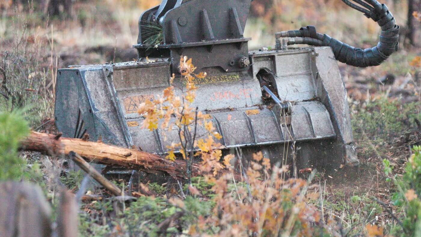 Mastication (sometimes called mulching or shredding) uses specialized equipment, usually large machines with rotating drums lined with cutting teeth, to shred small-diameter trees, dense brush, and understory vegetation. Instead of removing the debris from the site or burning it, mastication leaves the material on the ground in a chipped, mulch-like layer.