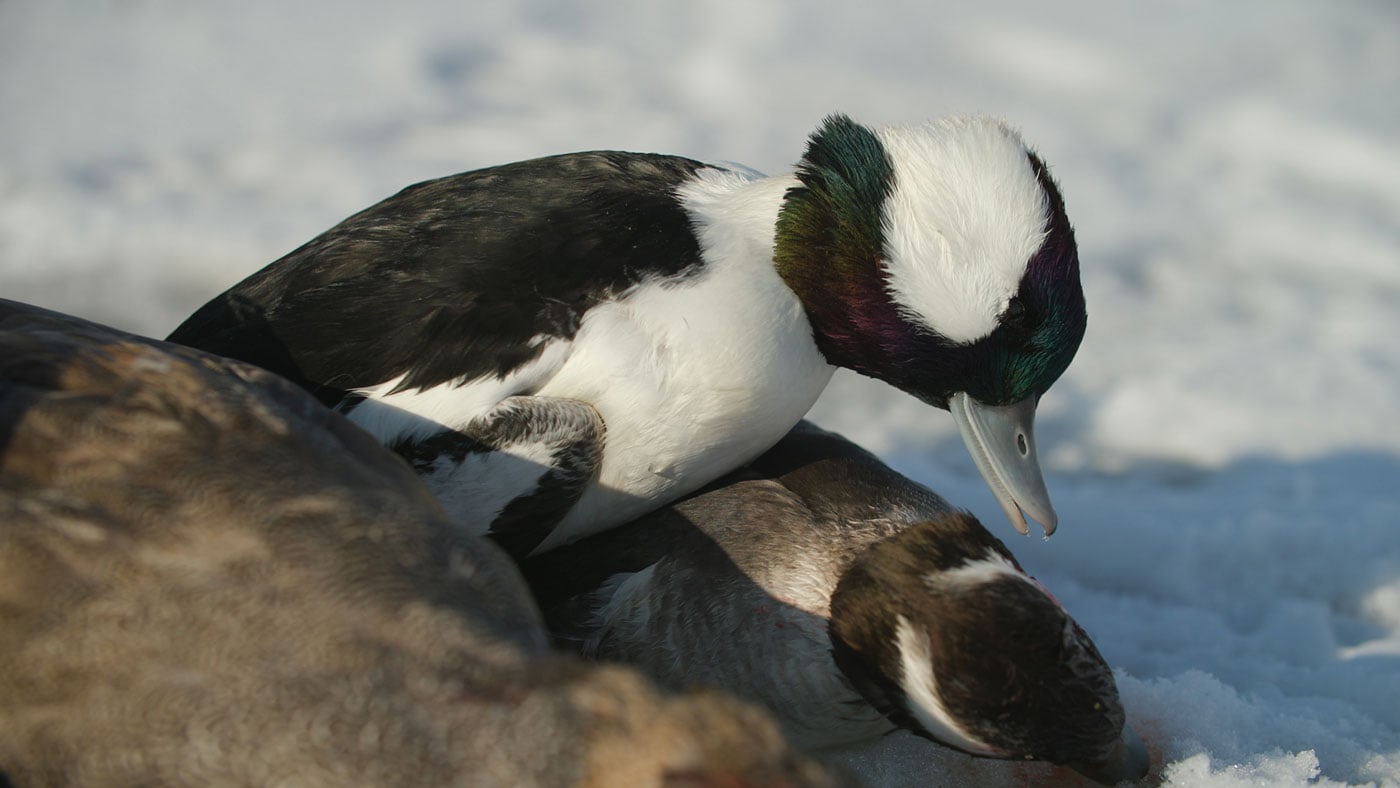While color is important, it isn’t the only distinguishing feature you should rely on. Take our drake mallard example from earlier. While they have a distinctive green head, so do other duck species. Northern Shoveler and Common Merganser drake ducks also have green heads, but they have different body characteristics when compared to mallards. Mergansers are much longer and more slender than other ducks, and Northern Shovelers will have a large, shovel-like bill, hence their name. Memorize the distinctive features of different ducks that you can pick out quickly to help tell them apart. For example, Northern Pintails will have a long, sharp-looking tail feather. Teal species will often be much smaller than other ducks, and Canvasbacks are often larger than many other ducks. Use these unique size and physical characteristics as a helpful guide.